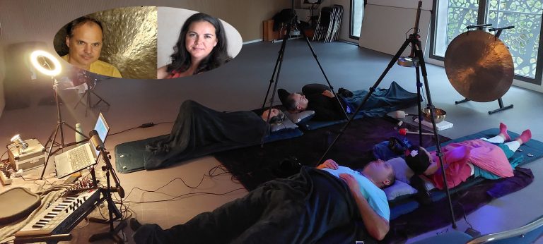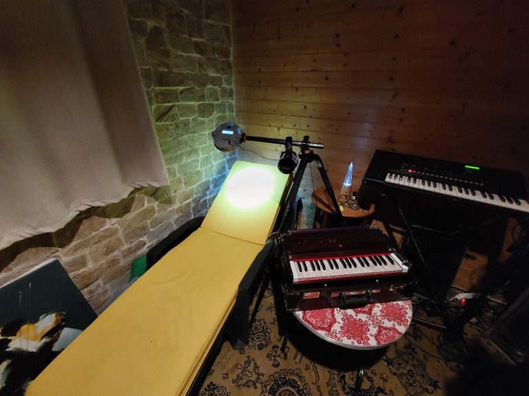 « Dans l’intimité de la lumière » Lampe hypnagogique et sons méditatif au casque audio.
